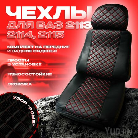 Чехлы модельные для автомобилей Ваз 2113 2114 2115 Лада Самара Lada Samara. Сшиты по заводским лекалам сидения. Лицевая часть чехлов сделана из перфорированной экокожи, что не мешает подогреву сидений, и на подкладе из пароллона, что увеличивает износостойкость чехлов. Боковые и задние части чехлов выполнены из гладкой и мягкой экокожи. Для комфорта на спинках передних сидений сделаны карманы на молниях. Комплект состоит из чехлов на все элементы передних и задних сидений, включая подголовники. Высокое качество материалов и стильный вид придаст вашему салону уют и красоту. Простая установка. Все необходимое (Резинки, крючки, липучки) входит в комплект чехлов! Термостойкие! На Ваз 2113 отверстия под рычажки откидывания передних сидений делаются при установке!
