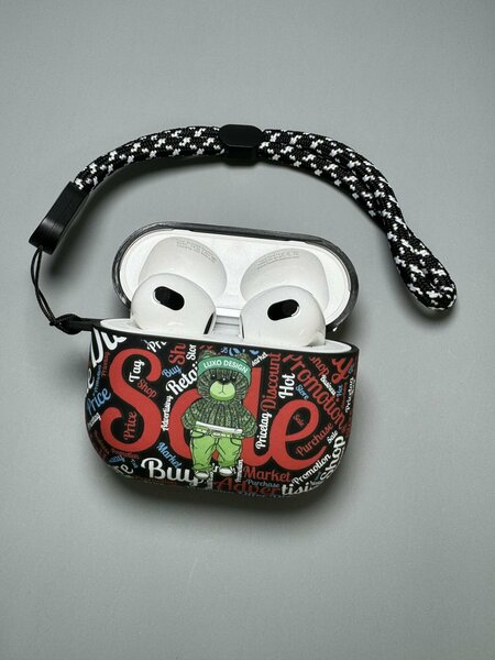 Чехол для наушников airpods 3. Матовый противоударный чехол с soft touch покрытием с очень насыщенными яркими цветами необычными брендовыми принтами и рисунками , не оставит Вас без внимания и восторга окружающих! Силиконовый case для аирподс 3 уверенно защитит футляр беспроводных наушников oт падений, царапин и других повреждений. Защитный кейс на айрподсы сделан из ударопрочного , тактильно приятного силикона. Наши чехлы флуоресцентные и светятся в темноте, для этого нужно некоторое время подержать case под прямыми лучами солнца , либо вблизи лампы и искуственного освещения! Плотно прилегает к футляру наушников , при этом смотрится очень аккуратно. В чехле имеется разъём для зарядного устройства, при этом Вы так же можете заряжать наушники эирподс беспроводной зарядкой. Силиконовый кейс лёгкий, компактный и практичный в использовании. В комплекте идет чехол на аэрподсы , и текстильный шнурок , без карабина. Данная модель чехла состоит из 2х отдельных частей , не спаенных между собой. Данный товар станет приятным подарком на др, новый год и другие праздники . Нет возрастных ограничений , подойдет детям , подросткам , как мужчинам так и женщинам . Наличие ассортимента разных цветов и принтов позволит порадовать девочек и мальчиков .