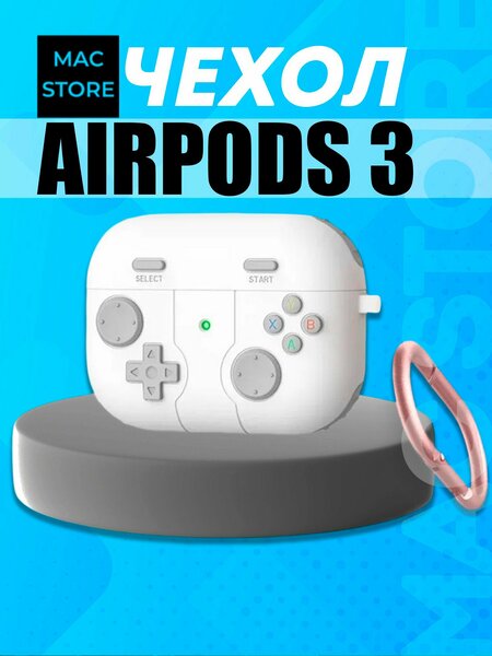 Чехол для AirPods 3 / Чехол с карабином в стиле геймпада / джойстика для Аирподс 3, Цвет: Белый