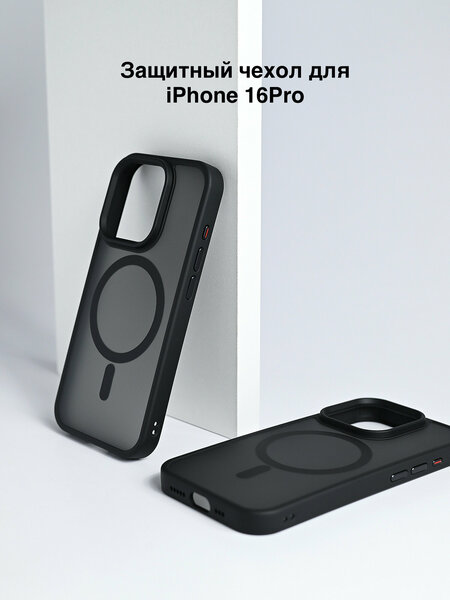 Чехол для Apple iPhone 16Pro: противоударный и с поддержкой Mag Safe Противоударный чехол для Apple iPhone 16Pro обеспечивает надежную защиту вашего смартфона от ударов и падений. Магнитное кольцо для беспроводной зарядки позволяет быстро и удобно заряжать ваш iPhone без необходимости снимать чехол. Изготовлен из высококачественного термопластичного полиуретана, этот чехол приятен на ощупь и обеспечивает комфортное использование. Матовая задняя панель с покрытием против отпечатков пальцев делает аксессуар стильным и практичным. Мягкая окантовка позволяет легко надевать и снимать чехол, а металлические кнопки, чувствительные к нажатию, обеспечивают удобство использования. Аккуратный бортик высотой 0,2 мм защищает камеру смартфона от царапин и повреждений. Лаконичный дизайн чехла подойдет людям, которые ценят стиль и функциональность. Представлен в двух классических цветах: Black, Gray. Выбирая этот чехол для вашего Apple iPhone 16Pro, вы получаете надежную защиту, удобство использования и стильный аксессуар, который подчеркнет ваш индивидуальный стиль.