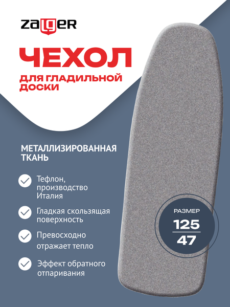 Чехол 125х47 см для гладильной доски 120х42 см, металлизированный, поролон, Zalger