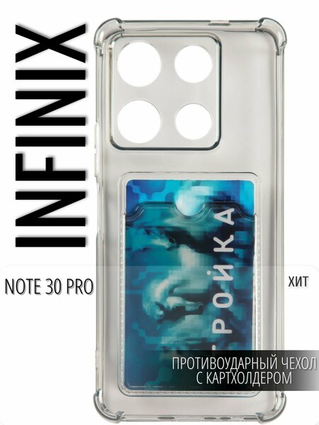 Защитный противоударный чехол с картхолдером для Infinix Note 30 Pro с кармашком для карт. Противоударный силиконовый чехол с усиленными углами – это идеальный выбор для тех, кто хочет надежной защиты и удобства использования своего устройства. Он обеспечивает защиту от царапин, ударов и падений, благодаря чему ваш смартфон будет всегда в безопасности. Главная особенность прозрачного чехла – усиленные углы и место для карт: благодаря усиленным углам, чехол принимает весь удар на себя, надежно сохраняя камеру и экран, а место для карт обеспечит хранение Вашего проездного, студенческой карты, пропуска или банковской карты. Модель спроектирована таким образом, что при падении все главные части смартфона будут защищены. Чехол имеет элегантный дизайн, а благодаря прозрачности практически незаметен на панели. Это отличный выбор тех, кто хочет защитить свой гаджет от повреждений, не скрывая при этом красивую панель. Силиконовый чехол тонкий и достаточно гибкий: он легко надевается, а за счет качественного материала плотно сидит на смартфоне. На чехле расположены технологические вырезы для легкого доступа ко всем портам и функциям, точно соответствующие модели вашего смартфона, что делает его очень удобным в использовании. Благодаря им, вы легко сможете пользоваться камерой, отпечатком пальца или регулировать звук. Тонкий прозрачный чехол приятно держать в руках, он не скользит в ладонях, и не нарушает геометрию смартфона, выгодно подчеркивая его стиль, и надежно защищая от повреждений. С его помощью вы сможете не только продлить жизнь вашего смартфона, но и сохранить его в отличном состоянии на долгое время.