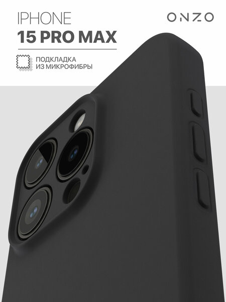 Чехол для iPhone 15 Pro Max черный матовый / Бампер на Айфон 15 Про Макс с подкладкой из микрофибры, тонкий, защитный