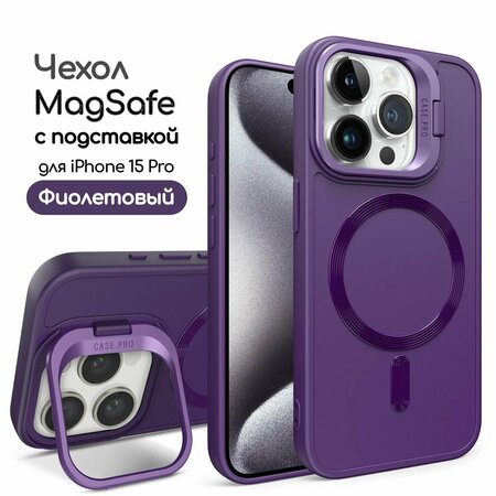 Чехол для iPhone 16 Pro с подставкой, айфон 16 про противоударный, совместимый с Magsafe (магсейф), фиолетовый