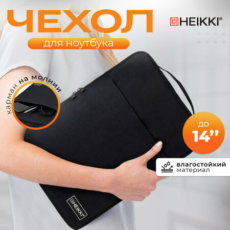 Чехол для ноутбука Heikki Option 13-14' (хейки), с ручкой и карманом, черный, 35,5х24х2,5 см, 272599