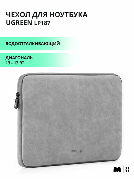 Чехол для ноутбука UGREEN LP187 / Диагональ 13 - 13.9" / Водоотталкивающий / цвет серый (60985)