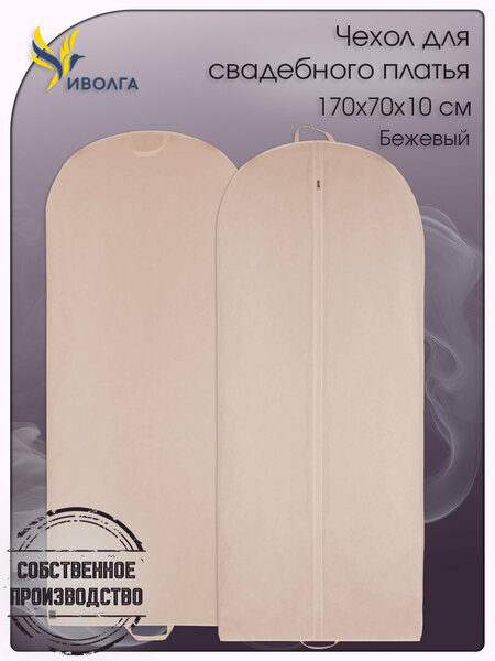 Чехол для свадебного платья Иволга 170х70х10 см. Чехол для объемной одежды высотой 170 см. Чехол объемный для свадебного платья изготовлен из нетканого материала, который пропускает воздух, но защищает от пыли и влаги. Качественный материал чехла не окрасит вашу одежду. Можно применить сухую и влажную деликатную очистку. Плотность материала скрывает изделие внутри. Чехол для свадебного платья в глубину 10 см, в ширину 70 см и высотой 170 см, что позволит вместить очень пышное платье без проблем. Горизонтальная прорезь для вешалки окантована для прочности, а ее форма позволяет с удобством пользоваться любой формой вешалки. Прочная молния вшита на оптимальную высоту чехла для вечернего наряда 170 см , что позволит удобно вкладывать и вынимать изделия из него. Две крепкие ручки дают возможность сложить чехол для свадебного платья пополам для удобной транспортировки. А небольшую петлю в основании чехла можно накинуть на крючок вешалки, чтобы зафиксировать его надежнее. Это придаст аккуратный вид чехлу в сложенном состоянии. Собственное производство в России и опыт работы в пошиве чехлов для одежды более 15 лет позволяет нам быть уверенным в качестве продукции.