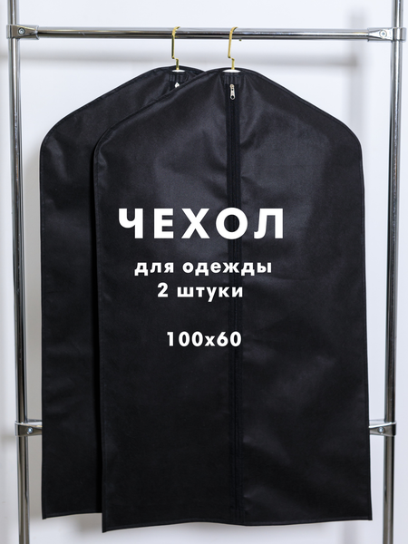 Чехол для одежды, на молнии, из плотного спанбонда, 100x60 см, чёрный, 2шт