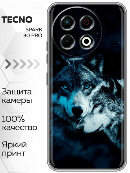Чехол для Tecno Spark 30 Pro с принтом Волки (Техно Спарк 30 Про)