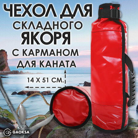 Чехол для якоря с карманом ПВХ GAOKSA / Гаокса, красная сумка для рыбалки, 51*14 см