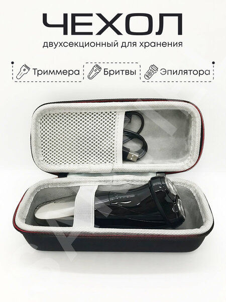 Устали от того, что бритвенные принадлежности лежат в разных местах? Универсальный чехол для бритвы лучшее решение! В органайзер для бритвы помещаются все необходимые аксессуары. Компактные размеры 19см8см7см, позволяют брать его с собой в командировку или путешествие. Защитный чехол для триммера имеет отдельный отдел для щёточки, насадок, аксессуаров, зарядного устройства. Так же может послужить как чехол сумка для машинки для стрижки, или же как сумка для эпилятора. Благодаря его универсальности можно использовать и хранить что угодно. Чехол для электробритвы легкий и прочный: материал EVA, отделка качественная ткань. Футляр для бритвы выполнен в классических цветах. Чехол для триммера имеет застежку молнию удобную при использовании. Футляр для электробритвы универсальный и практичный подарок для каждого. Так же может быть использован как чехол для лазерного эпилятора, чехол для фотоэпилятора, кейс для триммера. Дарите подарки и комфорт себе и своим близким.
