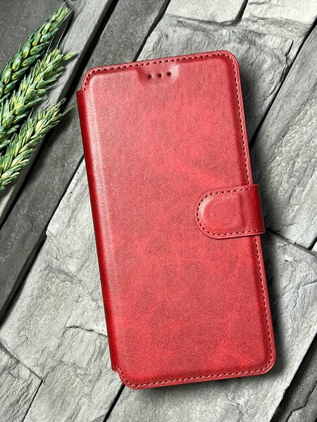 Чехол книжка для Honor X8C кожаный с магнитной застежкой / Хонор X8C с хлястиком, с функцией подставки, красный