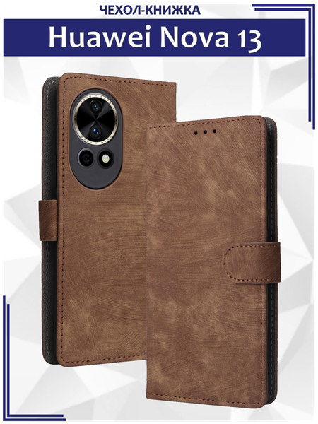 Чехол книжка для Huawei Nova 13 c магнитной застежкой / Нова 13 c отделением под карты (коричневая)