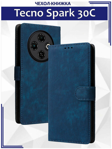 Чехол книжка для Tecno Spark 30C c магнитной застежкой / Спарк 30C c отделением под карты (синяя)