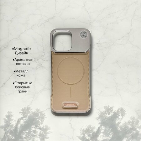 Чехол MetallAroma — это сочетание стиля, аромата и защиты в одном аксессуаре. Верхняя часть выполнена из прочного металла, который придаёт корпусу премиальный вид и устойчивость к повреждениям. Нижняя часть — из качественной эко-кожи, мягкой на ощупь и приятной в использовании. Главная особенность — встроенная ароматическая вставка. В области верхней части чехла предусмотрено небольшое отверстие, прикрытое защитной плёнкой: за ней скрывается тонкий, ненавязчивый парфюмерный аромат, который создаёт приятное ощущение свежести каждый раз, когда вы берёте телефон в руки. Чехол поддерживает MagSafe-дизайн, что позволяет удобно использовать магнитные аксессуары и беспроводную зарядку. Открытые боковые грани обеспечивают лёгкий доступ ко всем кнопкам, не нарушая эргономику устройства. Если вы ищете не просто защиту, а аксессуар с изюминкой — MetallAroma станет идеальным выбором.