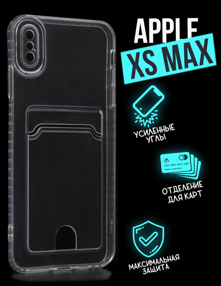 Чехол на айфон XS MAX с карманом для карт, противоударный, силиконовый, прозрачный