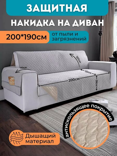 Универсальный Дивандек на диван с подлокотниками – это простое, практичное, и стильное решение для обновления и защиты вашей мебели. Размер изделия: 200х2190 см. Материал ткани – влагоотталкивающий приятный на ощупь, прочный, плотный, износостойкий. Покрывало легкое уходе и не садится после стирки. Покрывало для мягкой мебели - защита вашего дивана от кошек, собак, скроет имеющиеся повреждения и дефекты на мебели. Универсальный чехол на диван идеален для обновления дачной, садовой мебели (для дачи, сада, в дом) Антивандальный чехол отлично подойдет как накидка на диван. Возможна деликатная стирка при 30 градусах и лёгкий отжим без выкручивания, а также ручная стирка и сухая чистка. Чехлы на диван-это шикарный подарок маме бабушке сестре, по любому поводу - на новый год день рождения годовщину, на новоселье. Наша цветовая гамма позволит с легкостью обновить интерьер, подчеркнет стиль и индивидуальность. Накидка на диван позволит вам без труда украсить интерьер, практичный и универсальный чехол станет отличным декоративным решением. Подписывайтесь на наш магазин, где найдете все для уюта в доме и не только. Создайте стильный внешний вид в вашем интерьере вместе с нами!