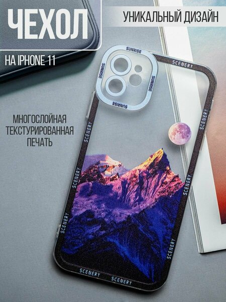 Чехол на iPhone 11 силиконовый защитный бампер для Айфон 11 прозрачный с принтом гор