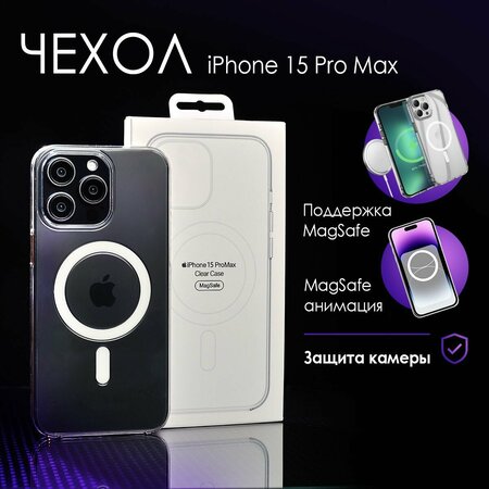 Ищете надежную защиту для вашего Айфон про макс пятнадцатой серии? Тогда вам подойдет стильный и функциональный чехол, который поможет избежать повреждений корпуса и экрана. Красивый и практичный аксессуар выполнен из прозрачного поликарбоната и гибких материалов. По свойствам тонкая и легкая противоударная модель напоминает силиконовые чехлы, но не желтеет со временем. Аксессуар поддерживает технологию беспроводной магнитной зарядки MagSafe. Он имеет защитные выступающие бортики, которые не дают экрану или блоку камер телефона соприкасаться с поверхностями и получать повреждения. При надевании чехла на смартфон срабатывает оригинальная анимация. Встроенный в изделие износостойкий сильный магнит белого цвета обеспечивает более быструю зарядку. Благодаря ему прозрачный чехольчик совместим со всеми магнитными аксессуарами, включая картхолдеры, автомобильные держатели и зарядки magsafe. Модель с трендовым классическим дизайном плотно прилегает к устройству, защищая заднюю крышку, боковые грани и объективы камер от царапин, потертостей или серьезных повреждений. Эстетичное ударопрочное изделие из высококачественных пластиковых материалов красиво смотрится на мобильном телефоне. Оно станет идеальным выбором для владельцев яблочных гаджетов и поможет сделать использование смартфона более безопасным. В комплекте с чехлом идет защита для блока камер.