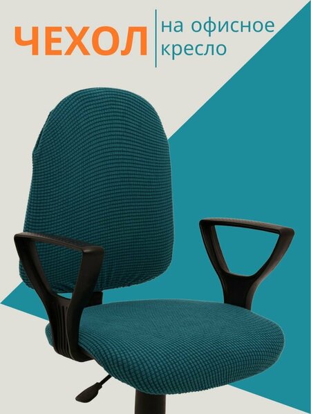 Чехол на офисное кресло, унивесальный, трикотажный, цвет бирюзовый