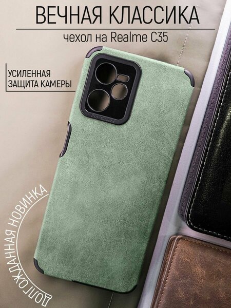 Чехол на Realme C35 противоударный матовый бампер для Реалми С35 с защитой камеры Зеленый