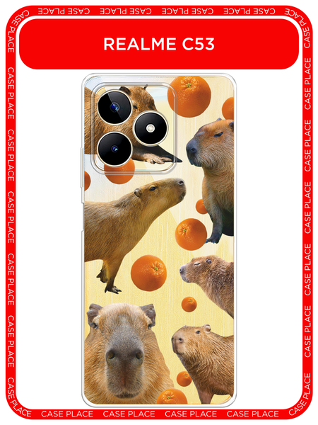 Чехол на Realme Note 50 / Реалми Нот 50 с принтом Капибара и апельсины, прозрачный