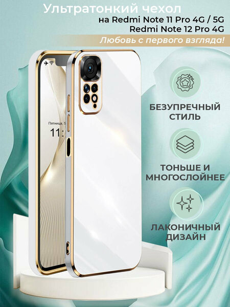 Чехол на Redmi Note 11 Pro / Redmi Note 12 Pro 4G защитный силиконовый бампер на Редми Нот 11 Про с золотой рамкой Белый