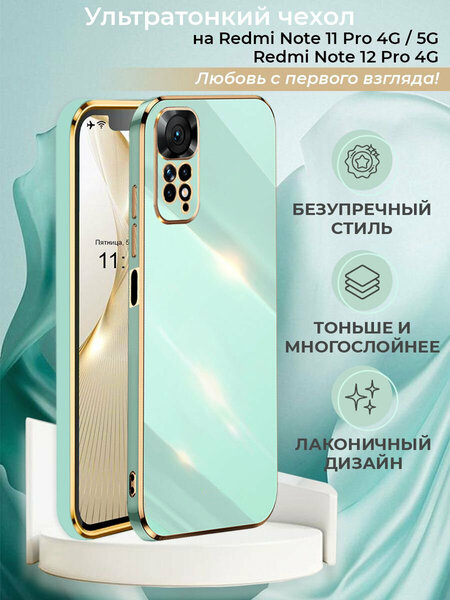 Чехол на Redmi Note 11 Pro / Redmi Note 12 Pro 4G защитный силиконовый бампер на Редми Нот 11 Про с золотой рамкой Мятный