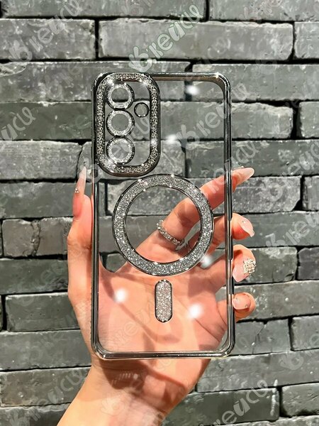 Чехол на Samsung Galaxy A16 MagSafe со стразами, полупрозрачный