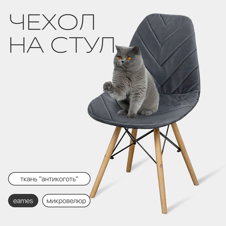 Чехол на стул со спинкой Eames DSW из микровелюра, 40x46 см, серый
