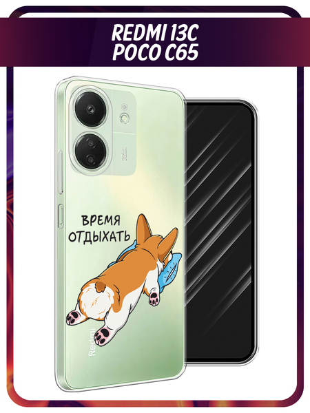 Чехол на Xiaomi Poco C65 / Сяоми Поко C65 с принтом Корги отдыхает, прозрачный