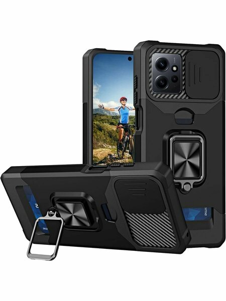 Чехол на Xiaomi Redmi Note 12 противоударный с карманом, черный