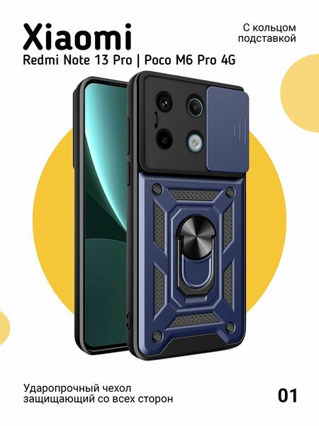 Противоударный чехол для Xiaomi Redmi Note 13 Pro и Poco M6 Pro 4G Противоударный чехол для Xiaomi Redmi Note 13 Pro и Poco M6 Pro 4G обеспечивает надежную защиту вашего смартфона от царапин, ударов и других механических воздействий. Дизайн и функциональность Чехол выполнен в стильном синем цвете и имеет прикольный дизайн с защитой и шторкой камеры, что подойдет для любителей комиксов или аниме. Магнитная фиксация для автомобильного держателя В чехле предусмотрено магнитное крепление для автомобильного держателя, что обеспечивает удобство использования и надежную фиксацию смартфона в автомобиле. Кольцо-подставка для просмотра видео Кольцо-подставка позволяет удобно смотреть фильмы или видео, обеспечивая комфортный просмотр. Однотонная матовая обложка с карманом для кредитных карт Однотонная матовая обложка с карманом для кредитных карт, проездного и пропуска обеспечивает удобное хранение и быстрый доступ к вашим картам. Тонкий силиконовый и пластиковый чехол с окном для камеры Тонкий силиконовый и пластиковый чехол с окном для камеры, которое фиксируется в конечных положениях, обеспечивает комфортное использование и защиту камеры от повреждений. Выбирая противоударный чехол для Xiaomi Redmi Note 13 Pro и Poco M6 Pro 4G, вы получаете надежную защиту и стильный аксессуар для вашего смартфона.