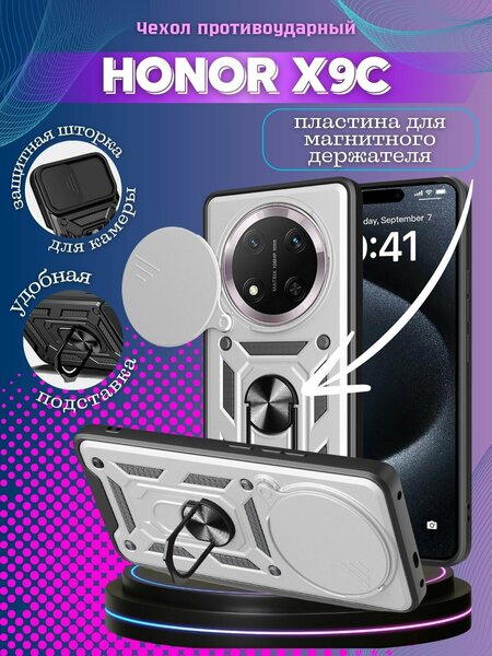 Чехол противоударный armors для Honor X9C / Хонор Х9С: надежная защита и функциональность. Полная защита от повреждений. Чехол противоударный armors на Honor X9C / Хонор Х9С обеспечивает надежную защиту вашего смартфона от царапин, ударов, падения и других повреждений. Благодаря использованию высококачественных материалов, таких как силикон и пластик, чехол обеспечивает ударопрочность и долговечность. Удобная трансформация в подставку. Особенностью данного чехла является его способность мгновенно трансформироваться в удобную подставку. Это позволяет комфортно просматривать видео, читать или просто наслаждаться просмотром любимых фильмов и сериалов. Защита камеры. Защитное окно для камеры обеспечивает дополнительную защиту для объектива камеры вашего смартфона. Это предотвращает появление царапин и других повреждений, сохраняя качество снимков на высоком уровне. Совместимость с Honor X9C / Хонор Х9С. Чехол разработан специально для Honor X9C / Хонор Х9С, что гарантирует его точное и плотное прилегание к корпусу смартфона. Стильный дизайн и цвет. Чехол имеет стильный Серебряный цвет, который сочетается с черным матовым оттенком. Такой дизайн подчеркнет индивидуальность и стиль владельца смартфона. Выбирайте чехол противоударный armors для Honor X9C / Хонор Х9С и обеспечьте своему смартфону надежную защиту и функциональность на долгое время. Так же в нашем магазине вы можете приобрести для себя или в подарок чехол с подставкой, чехол с карманом для карты, чехол с кольцом, чехол с магнитом для авто-держателя, чехол c рисунком, чехол с картхолдером, с закрытой камерой, карбоновый чехол или силиконовый чехол - просто перейдите в профиль магазина и наберите название своей модели телефона в строке поиска по ассортименту магазина.