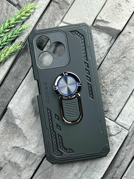 Ударопрочный защитный противоударный чехол для Realme C53/ Realme C51/ Realme Note 50 обеспечивает максимальную защиту. Силиконовый бампер выступает над дисплеем, что позволит спокойно класть телефон вниз экраном. Бронированный чехол с подставкой в виде кольца позволит комфортно просматривать видео. Кольцо с держателем для пальцев, уберегает от случайных падений. Бронебойный пластиковый кейс накладка с защитой камеры плотно прилегает ко всем кнопкам и точно повторяет контуры телефона, не скользит в руке, легко надевается и снимается. Резиновый бронированный чехол закрывает камеру. Поднятый ободок защищает экран от царапин. Модный эстетичный красивый и стильный чехол кейс. Противоударный бампер накладка имеет поднятую переднюю панель, которая предотвращает касание экрана смартфона с любой гладкой поверхностью. Можете класть телефон экраном вниз на стол не боясь, что он поцарапается. Вырезы для зарядки, наушников и камеры.