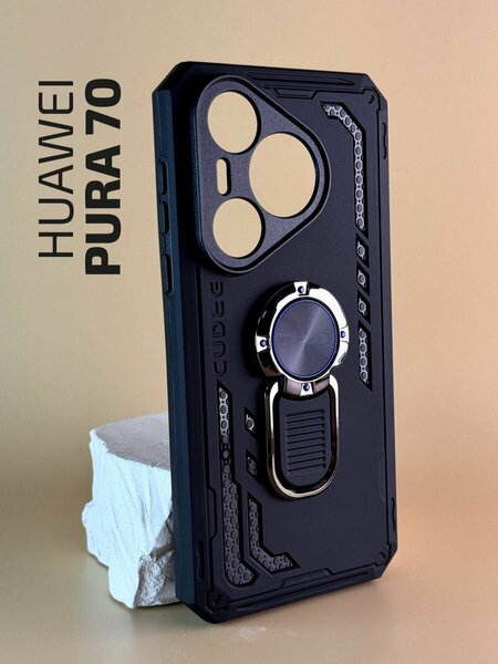 Чехол противоударный на Huawei Pura 70/ Чехол на Хуавей Пура 70 с защитой камеры, ударопрочный, усиленный с кольцом, черный