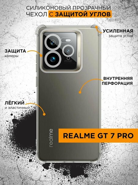 Чехол с защищенными углами для realme GT 7 Pro / реалми ГТ 7 Про силиконовый прозрачный