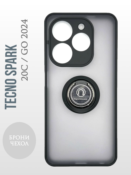 Чехол Tecno Spark 20c / GO 2024 противоударный (Брони чехол) с кольцом-подставкой и металлической пластиной