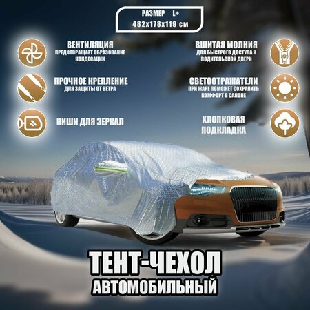 Тент-чехол для ДонгФенг Н30 Кросс хэтчбек 5 дверей / DongFeng H30 Cross 2011, 2012, 2013, 2014, 2015, 2016, 2017, 2018 года выпуска - это специальное покрытие, защищающее автомобиль от внешних воздействий и погоды. Он предотвращает повреждения и сохраняет внешний вид автомобиля. Тенты доступны в разных размерах и изготавливаются из прочных материалов, ознакомиться с полным ассортиментом можно также в нашем магазине (для этого кликните на карточку продавца). Легко установить и удобно хранить. Этот аксессуар помогает сохранить автомобиль в отличном состоянии, сохраняя его стоимость и эстетическое качество. Изготовлен чехол (тент) из алюминиевой пленки с хлопковой подкладкой. Алюминиевая пленка способна отражать ультрафиолетовые лучи, что также обеспечивает дополнительную защиту и комфортную температуру внутри салона. Данная модель чехла-тента имеет ниши для боковых зеркал и вшитую молнию для быстрого доступа к водительской двери. Размер L+ 482*178*119 см.