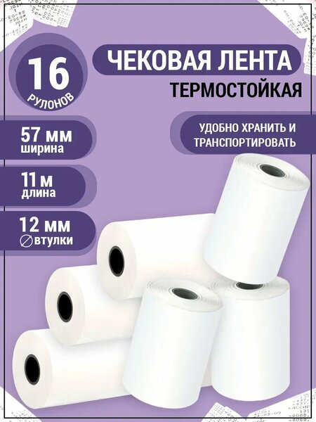 Чековая лента 57 мм для термопринтера Axler – специальная бумажная продукция, которая используется в кассовых аппаратах, банкоматах и других устройствах с термо принтером для бесчернильной печати. Продается в наборе, в котором 16 рулонов с длиной намотки каждого 11 метров, поэтому ее хватит на длительный период использования. Размеры универсальные: ширина – 57мм, диаметр втулки – 12 мм, поэтому кассовую ленту 57 мм можно купить для большинства эквайрингов и касс. Чековая лента 57*12 для терминалов изготовлена из бумаги с термочувствительным слоем, изменяющим цвет в тех местах, где нагревается, на них и появляется нужная информация при печати чека. Лента для кассовых аппаратов имеет традиционный белый цвет, а печатает черным. Термолента для банковских терминалов произведена из немецкого сырья класса премиум на качественном оборудовании, которое обеспечивает ровную намотку на рулон, а значит, и равномерную печать. Кассовая чековая лента термо гарантирует печать с четкими линиями и без пробелов. Термотрансферная лента надежно упакована в термоусадочную пленку, поэтому не повредится при доставке. Если вам нужна чековая лента из термобумаги для кассовых аппаратов, выбирайте продукцию Акслер – сочетание доступной цены и высокого качества!