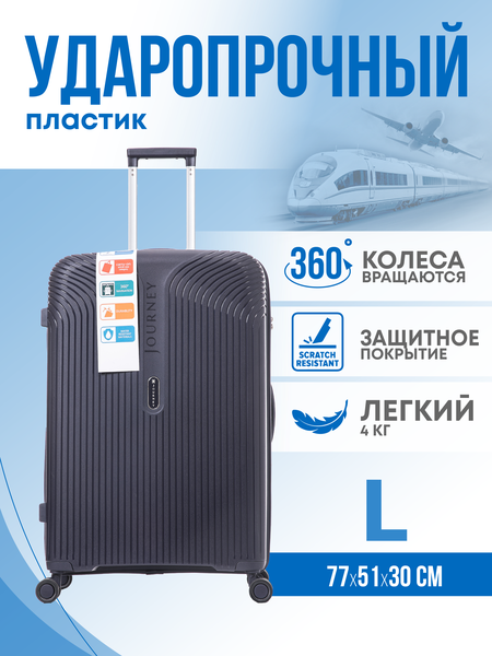 Чемодан Journey - это прочный и водонепроницаемый чемодан из полипропилена. Он имеет износостойкий материал и оснащен 4 колесами для удобства передвижения. Размер L идеально подходит для путешествий и имеет объем 105 литров. Преимущества чемодана Journey: - Водонепроницаемость - защищает содержимое от влаги и обеспечивает сохранность вещей в любую погоду. - Износостойкость - прочный материал чемодана устойчив к царапинам, потертостям и другим механическим повреждениям. - Усиленная ручка из прочного металла - 3 уровня фиксации выдвижной ручки - позволяет регулировать высоту ручки чемодана и обеспечить удобство при транспортировке. - Опорные ножки на боковой стенке - обеспечивают устойчивость чемодана на неровной поверхности. - Разделитель в главном отделении - позволяет организовать пространство и быстро найти нужные вещи. - Фиксирующие ремни и отделение-сетка - обеспечивают дополнительную защиту от повреждений и возможность разместить мелкие предметы. - Двойные усиленные колеса - обеспечивают плавное движение и устойчивость чемодана. - Поворотные на 360° колеса - позволяют легко маневрировать и поворачивать чемодан в любом направлении. - Встроенный кодовый замок с функцией TSA - обеспечивает безопасность и удобство при транспортировке в аэропорту. Вы можете купить чемодан Journey, цвет товара для фильтра бежевый, в нашем интернет-магазине по выгодной цене.