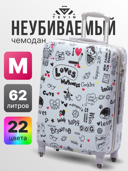 Чемодан на колесах TEVIN из поликарбоната прекрасно подойдет для путешествия всей семьей. Чемодан на колесиках TEVIN, неубиваемый, он обладает высокой ударопрочностью и долговечностью, легко сможет пережить все невзгоды транспортировки. Материал, из которого выполнен средний чемодан на колесах, отличается легкостью, устойчивостью к высоким и низким температурам, стойкостью к механическим воздействиям и не подвержен растрескиванию. Лучшие чемоданы TEVIN имеют богатую палитру, выпускаются не только в различных цветах, но и интересной фактуре, а также с забавными, креативными наклейками. С таким ярким и интересным дизайном, вы точно будете выделяться из толпы, и всегда увидите его среди множества других при получении багажа. Чемодан м имеет удобную регулируемую ручку и облегченную конструкцию, это делает его не заменимым в дороге. Пластиковый чемодан маневренный, колеса-спиннеры, вращаются на 360°, усилены металлическими втулками, диски-армированный пластик, покрыты износостойкой резиной-обеспечивает бесшумность и плавность хода. Чтобы чемодан для путешествий служил вам еще дольше, рекомендуем в нашем магазине приобрести дополнительно красивый чехол на чемодан М. ключевые характеристики: •Размер: М, 62 л •Размер: 64х41х25 см •Вес –3,2 кг •Материал: поликарбонат •Кодовый замок Чемодан из поликарбоната TEVIN оснащен встроенным кодовым замком с индивидуальной настройкой кода, который позволит не беспокоиться за сохранность личных вещей. Замок с индивидуальной настройкой представляет собой внешнюю плашку с колесиками, с их помощью устанавливается персональный код для разблокировки. Первоначально необходимо установить заводской код 0-0-0, чтобы разблокировать замок, затем потянуть плашку в направлении, указанном в инструкции к чемодану. После этого следует установить свой код, запомнить его и вернуть плашку в первоначальное положение. Для переустановки кода просто повторите все действия заново. Чемодан на колесах / чемодан / чемодан на колесиках / средний чемодан на колесах /лучшие чемоданы / чемоданы на колесах недорого / чемодан для путешествий / чемодан на колесах средний размер / пластиковый чемодан / чемодан из поликарбоната / чемодан м / Tevin / чемоданы легкие и прочные на колесах / чемодан поликарбонат лучшие будет отличным подарком на любой праздник (8 марта, 14 февраля, 23 февраля, новый год, на новоселье, отпуск) другу (подруге, родственникам, коллеге, сестре, брату, папе, маме, тёте, дяде, близким, мужчине, женщине). Чемоданы легкие и прочные на колесах TEVIN это высокое качество по приятной цене!