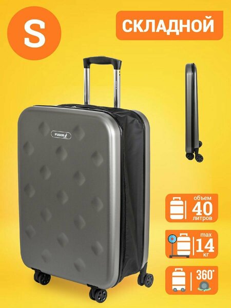 Чемодан размером S из поликарбоната Fusion FTS-1005-S станет идеальный компаньоном в поезд, в тур, в самолет, на отдых, в отпуск, в поездку на море, в лагерь, в дорогу. Чемодан пластиковый дорожный с алюминиевой рамой имеет хороший вместительный объем 40 литров. Чемодан очень удобный, семейный, изготовлен из прочного качественного поликарбоната, оборудован 4 двойными колесами с движением 360 градусов. Чемодан жесткий прочный с кодовым замком устойчив к механическим воздействиям. Чемодан топ Fusion раскрывается на 2 вместительных отделения. Для компактного хранения чемодан можно сложить и убрать под кровать, диван, в шкаф, антресоль. Он не займет много места как дома, так и в отеле. Перед поступлением в продажу все чемоданы торговой марки Fusion подвергаются необходимой проверке качества для обеспечения соблюдения норм и стандартов грузоперевозки. Поэтому при соблюдении правил эксплуатации изделий мы можем гарантировать их долгую и надёжную службу. ключевые характеристики: Размер: S (20") Внутренний объем: 40 л Материал: поликарбонат 4 двойных колеса с поворотом на 360 градусов Кодовый замок Цвет: серебристый области применения: Для перелетов Для поездок на машине или на поезде Для переезда В командировках На отдыхе особенности И преимущества: Максимальная нагрузка - 14 кг Прочный корпус Продуманная внутренняя организация Элегантный дизайн 4 двойных колеса с возможностью вращения на 360° Эргономичная организация внутреннего пространства Выдвигающаяся металлическая телескопическая ручка Вес чемодана - 2,3 кг конструкция: Эргономичная жесткая конструкция Надежная застежка-молния Раскрывается полностью состав: Материал корпуса - PC поликарбонат Материал подклада - полиэстер Застежка-молния Колеса - пластик/резина