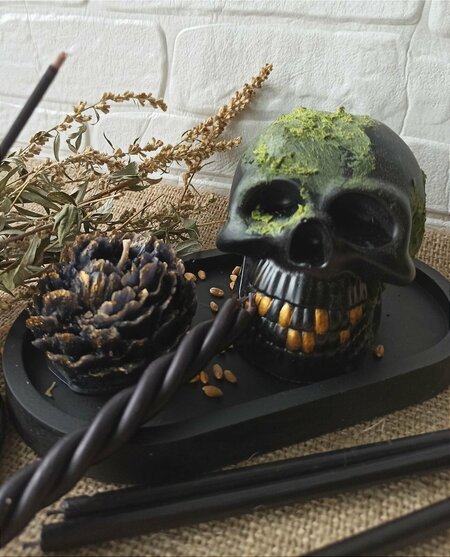 Оригинальный декор череп станет незаменимым акцентом в любом помещении. Он способен преобразить обычную комнату в эпицентр стиля и элегантности. Подойдет как для современного дизайна, так и для классического, добавляя в него нотку загадочности и изысканности. Черный череп представляет из себя символ силы, страсти и загадочности, поэтому он идеально подойдет для создания уникального интерьера. Не существует ничего более выразительного, чем этот универсальный предмет декора. Он притягивает взгляд своим глубоким и проникновенным темным оттенком, что усиливает его впечатляющую притягательность. Дно изделия имеет пробковую наклейку для защиты вашей мебели от возможных царапин. Изделие выполнено из природного экологически чистого высокопрочного скульптурного гипса, шлифуется и обрабатывается вручную, грунтуется и покрывается защитными средствами от влаги и пыли. Все изделия проходят контроль качества и надежно упаковываются для транспортировки. Гипс – это пористое вещество, впитывающее воду и долгий контакт с жидкостью может испортить изделие.
