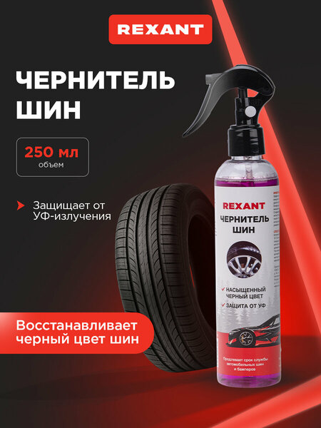 Чернитель шин от REXANT - это эффективное средство для восстановления внешнего вида автомобильных покрышек и других резиновых элементов автомобиля. Он возвращает глубокий черный цвет, обновляет внешний вид и придает глянцевый блеск. Создаваемая защитная пленка обладает антистатическими свойствами, защищая шины от пыли и УФ-излучения. Чернитель шин REXANT может использоваться не только для обработки шин, но и для пластиковых, резиновых и виниловых поверхностей. Объем упаковки составляет 250 мл, что позволяет использовать средство экономно и на протяжении длительного времени. Нанесение чернителя шин осуществляется распылением, что обеспечивает равномерное распределение средства по поверхности и удобство использования. Основа чернителя - вода, что делает его безопасным для окружающей среды и здоровья человека. Выбирая чернитель шин REXANT, вы получаете эффективное средство для ухода за шинами вашего автомобиля, которое обеспечивает восстановление первоначального цвета и блеска, а также защиту от пыли и УФ-излучения.