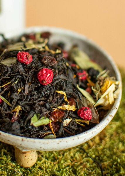 Чай Таежный сбор - листовой черный чай с лесными ягодами, в основе которого лежит насыщенный индийский ассам. Таежный чай также несет в себе целебные качества таежных трав, которые укрепят ваше здоровье. Согревающий и успокаивающий травяной чай является источником витаминов и полезных свойств. Выбирайте витаминный травяной сбор премиум класса в подарок родным и близким, погрузитесь в мир настоящей тайги. Чай заварной фруктовый прекрасно подойдет для семейных мероприятий, бани или даже рыбалки. Натуральный листовой чай в жаркие дни станет отличным способом утолить жажду, а в зимние холода - согреет Вас изнутри. Остудив заваренную смесь, вы получите освежающий холодный авторский чайный напиток. Элитный чай с фруктами можно использовать для диетического питания, ведь брусника, смородина и календула работают как природные антисептики. Натуральный чай с ягодами - перенесет вас в вечерний лес и подарит теплые воспоминания уютных чаепитий. Гранулированный заварочный чай поставляется в плотной упаковке с зип-локом, что обеспечит удобное хранение продукта. Подходит для заваривания в любом чайнике, рекомендуется заваривать водой, температура которой 85-95 градусов. Приятного чаепития!