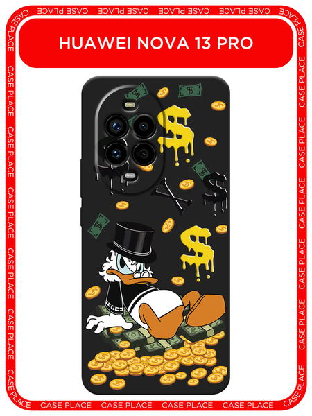 Черный матовый чехол на Huawei Nova 13 Pro / Хуавей Нова 13 Про с принтом Скрудж Макдак среди денег
