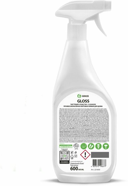 Универсальное чистящие средство спрей Gloss 0,6 л от компании Грасс для ванной комнаты - профессиональная бытовая химия для дома. Подходит для чистки ванны, раковины, джакузи, бассейна, сантехники, фаянсовых изделий и кафеля от известкового налета, потеков ржавчины, мыльных разводов и солевых отложений не повреждая поверхность. Эффективно удаляет сложные и застарелые загрязнения. Безопасно для стеклокерамических, металлических акриловых поверхностей, раковин из нержавеющей стали. С помощью спрея даже генеральная уборка в доме проходит легко и быстро. Придает поверхности чистоту и блеск, сохраняя эффект антиналет на несколько дней. Не придется использовать набор скребок и жестких щеток, достаточно мягкой тряпки, губки и салфетки. Многофункциональное дезинфицирующее средство не содержит хлора и щелочных веществ. Приобретая чистящие и моющие товары Grass, Вы поддерживаете эко проекты компании по использованию вторично переработанного пластика. Попробуйте всю линейку бытовой химии универсальных чистящих и моющих от Грасс : средство для мытья окон и зеркал, средство для сантехники, средство для ванной и унитаза, средство для кухни антижир , из которой можно собрать отличный набор для уборки вашего дома