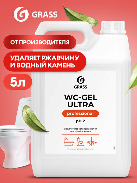 Чистящее средство WC-GEL Ultra 5л от Grass — предназначено для удаления известкового налета, ржавчины, солевых отложений, водного камня, нейтрализует неприятные запахи, убивает микробы. Универсальное кислотное моющее средство на основе ортофосфорной кислоты подходит для чистки и мытья ванны, унитаза, раковины, душевых кабин, сантехники, туалета, кухни, фаянсовых изделий, полов и кафеля. Гелевая формула обеспечивает его экономичный расход. Не содержит в составе хлор. Благодаря эффективной формуле, быстро удаляет сложные и застарелые загрязнения. Безопасно для акриловых ванн и поверхностей из цветных металлов. Выгодный объем - канистра 5 литров, поможет сэкономить вам на покупке новых флаконов, а также использовать наше средство для профессиональной уборки жилых помещений, отелей, кафе, парикмахерских, больниц и других учреждений. Гель, За счёт своего уникального состава и активных действующих компонентов, справится с любой задачей лучше других жидких средств для уборки. Способ применения: 1) Нанести на очищаемую поверхность. 2) Оставить на 1-2 минуты. 3) Потереть щёткой или губкой. 4) Смыть водой. При необходимости - повторить обработку. Не рекомендуем для использования на хромированных поверхностях. Бытовая химия GRASS - это незаменимые помощники в деле любой уборки. Мы рекомендуем выбирать качественные моющие и чистящие средства от Официального магазина Грасс, заботясь о вашем здоровье и окружающей среде.