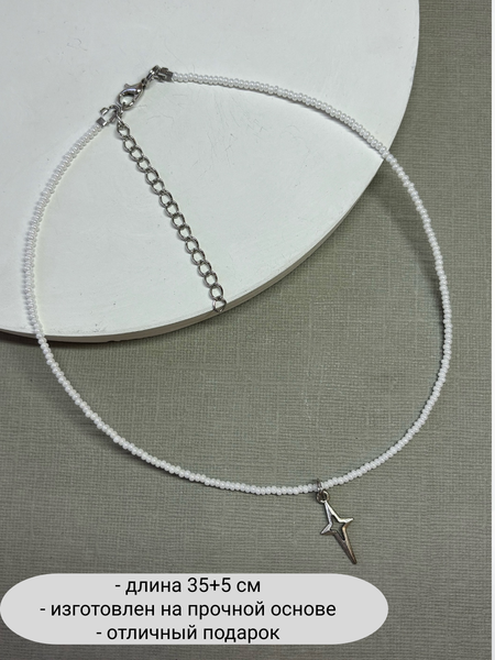 Чокер из белого чешского бисера с подвеской в виде звезды. Это настоящая находка для тех женщин и девочек, которые не терпят серости и готовы выделяться из общей массы, заявляя о своей индивидуальности. Благодаря регулируемой длине, 35-40 см, колье идеально облегает шею. Стильный чокер - настоящий хит сезона. Новое модное женское украшение - ожерелье на шею. Это тонкая цепочка, похожая на нить на вашей шее из бусин, бисера, натуральных камней. Чокер не будет создавать неудобств в носке и будет плотно сидеть на вашей шее. Эффектный подарок для детей, лучшей подруги, жены, девушки. Чокер на шею привлекает внимание окружения и никогда не оставит в стороне. Данное ожерелье поможет девушке чувствовать себя женственной, нежной и красивой. Фурнитура выполнена из металла. Ручная работа и оригинальный дизайн. Данная бижутерия не оставит вас равнодушной! Чекер подойдет для школы, выпускного, дня рождения, для вечерних и повседневных образов. Отлично подойдет на подарок маме, сестре, подруге, коллеге. Чекер на шею может подойти на праздники, такие как Новый год, либо 8 марта, 14 февраля. Наше украшение может послужить отличным подарком, либо подойдёт в носке на каждый день. Каждый чокер проверен на прочность Аксессуар можно надеть на свадьбу, вечеринку, выпускной, на 1 сентября, последний звонок, на свидание, день рождения, прогулку, в театр. Наш чекер - отличный подарок любимой девушке, подруге, сестре, маме и коллеге на последний звонок. Представлен в цветах: черный, белый. Чекер красивый аксессуар на шею женский подойдёт на любое мероприятие. Ожерелье из бисера смотрится элегантно и нежно. Колье из бисера, колье на шею подойдёт под любой образ. Аксессуар для женщин полюбится Вами с первым минут носки. Стильное, модное украшение - Чокер отлично подойдёт под вечерний образ. Нежные чокеры на шею комбинированы вставками, подвесками из гематита в виде сердца, бусин акрилового кристалла, бусин из жемчуга и натуральным жемчугом. Чокеры из бисера изделия собираются в России и выполнены полностью вручную и попадут вам в самое сердце. В нашем магазине Вы найдете разноцветные чокеры, ожирелья и колье бижутерия женская. Наши украшения женские или для девочки можно использовать как детские фенечки на шею и на руку. Чокеры подойдут в подарок для любимой девушки или жены и для лучших подруг на торжество. Украшение из натуральных материалов жемчужное женское ожерелье нежно обхватывает шею и добавляет изысканности вашему образу на свадьбе чёкер подвеска белый. Коллекция чокеров ожирелье со стразами, из бисера нашего магазина предоставит вам уникальные варианты украшений на все случаи жизни чекеры - роза, цветок или черный женский жемчужный чекер сердечки натуральный гематит жемчуг.
